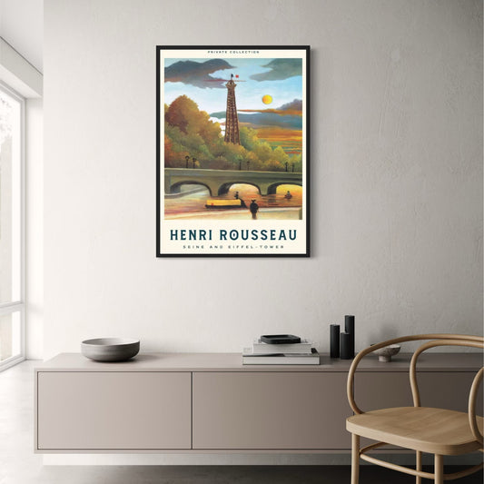 Henri Rousseau Scenic Art | Eiffel Tower by the Seine | Artistic Wall Decor Poster | Iconic Landscape Print | Home & Garden Art