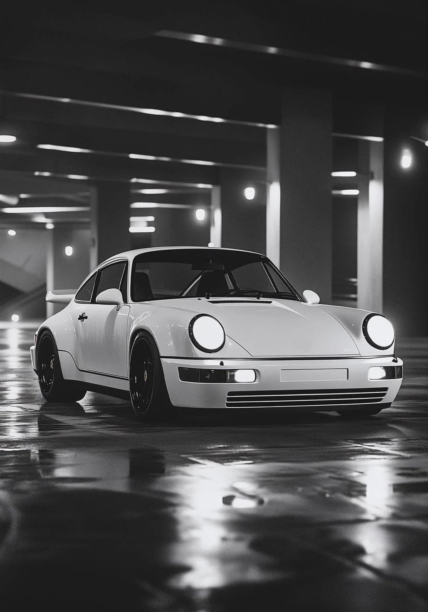 Retro White Sports Car | Black & White Automotive Design