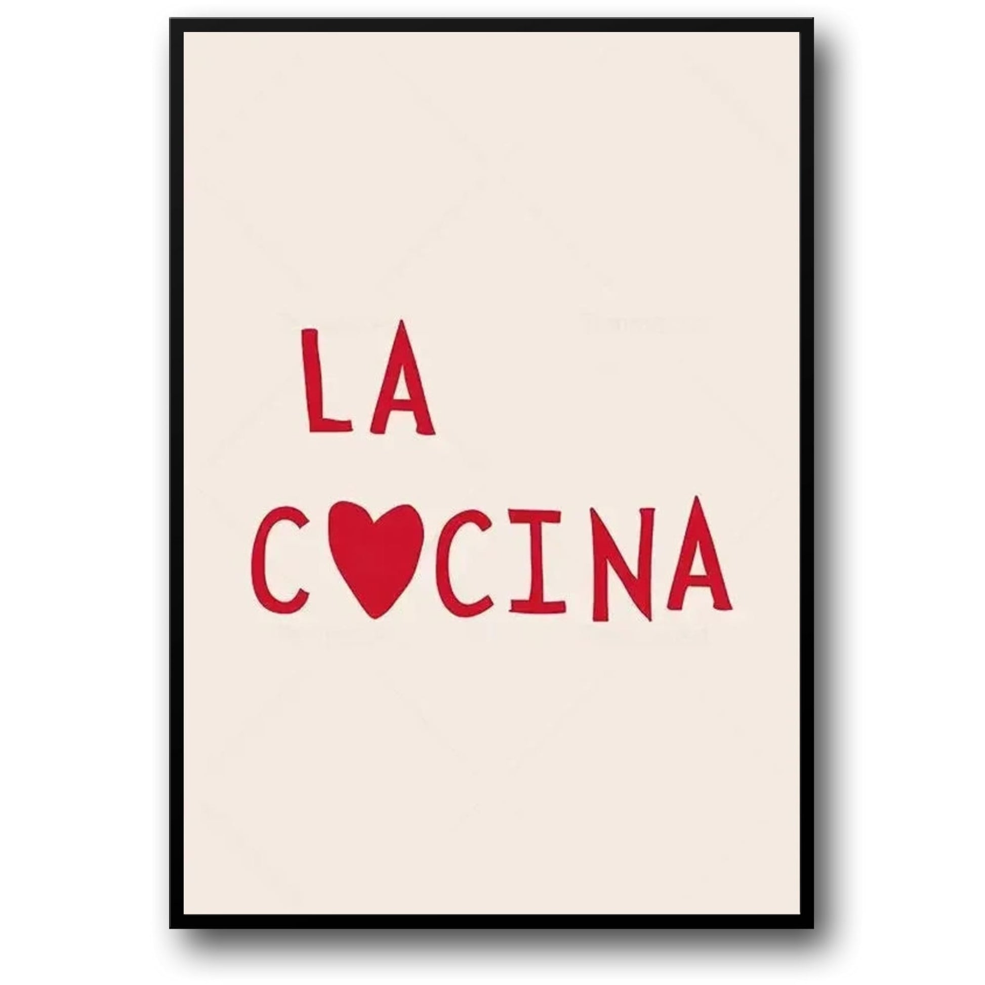 Hand Drawn Minimalist Kitchen Art Poster | Black & White Food Illustration | Modern Rustic Wall Decor | La Cocina