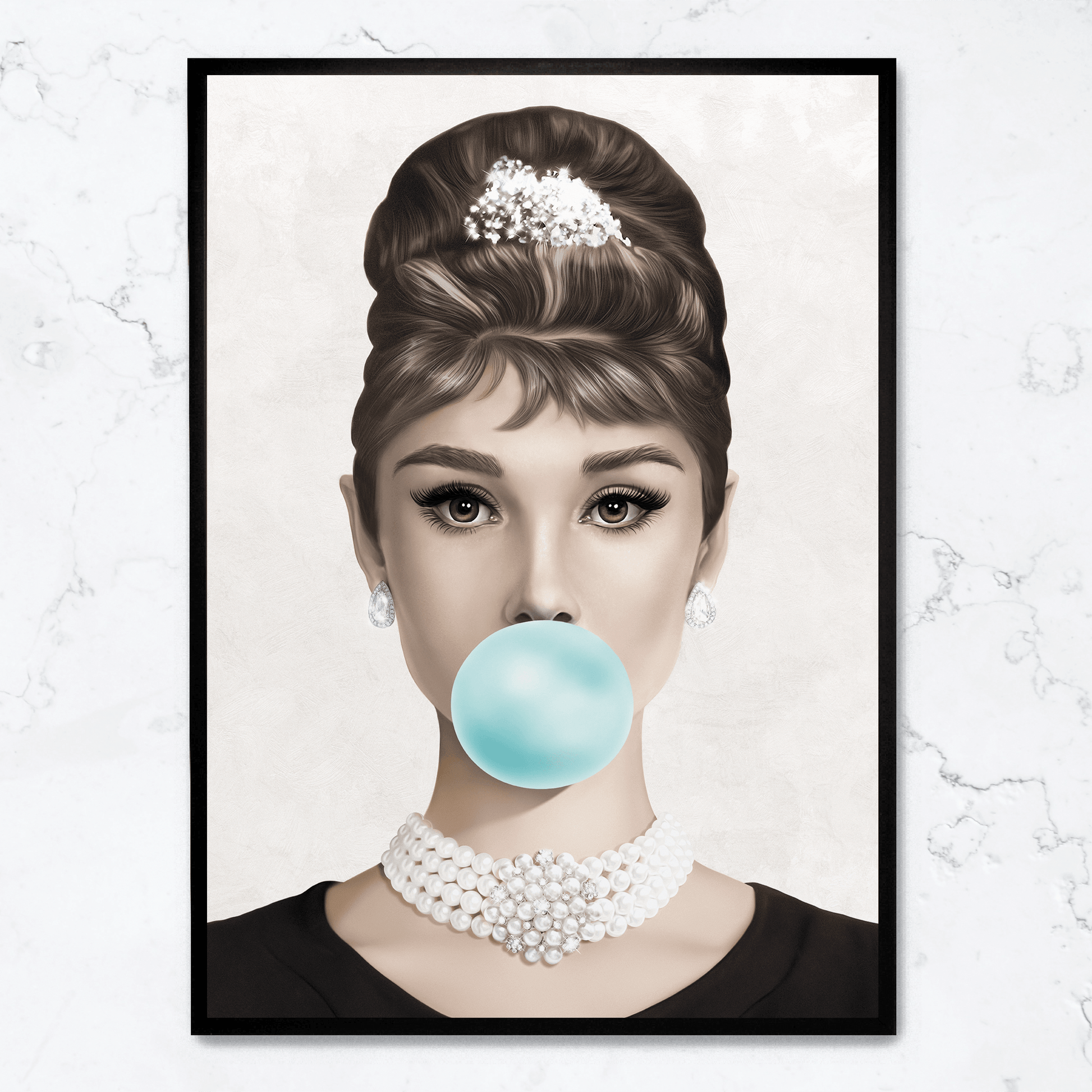 Audrey Hepburn Bubblegum Poster | Classic Hollywood Icon | Vintage Wall Art Decor | Pop Art Style | Elegant Black and White Print | Home Decor | Retro Glamour