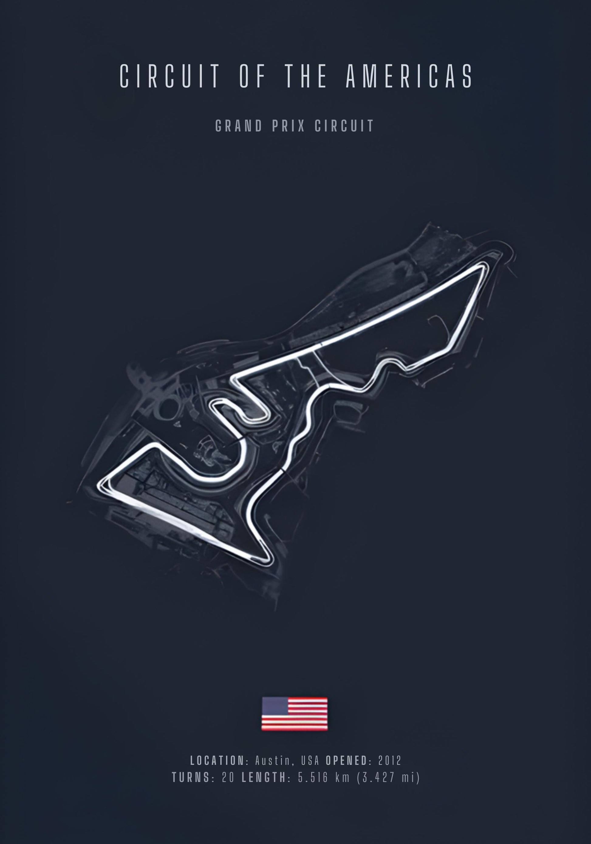 Circuit of The Americas | Formula 1 Track Layout | Racing Circuit Artwork | Wall Poster | Home Decor