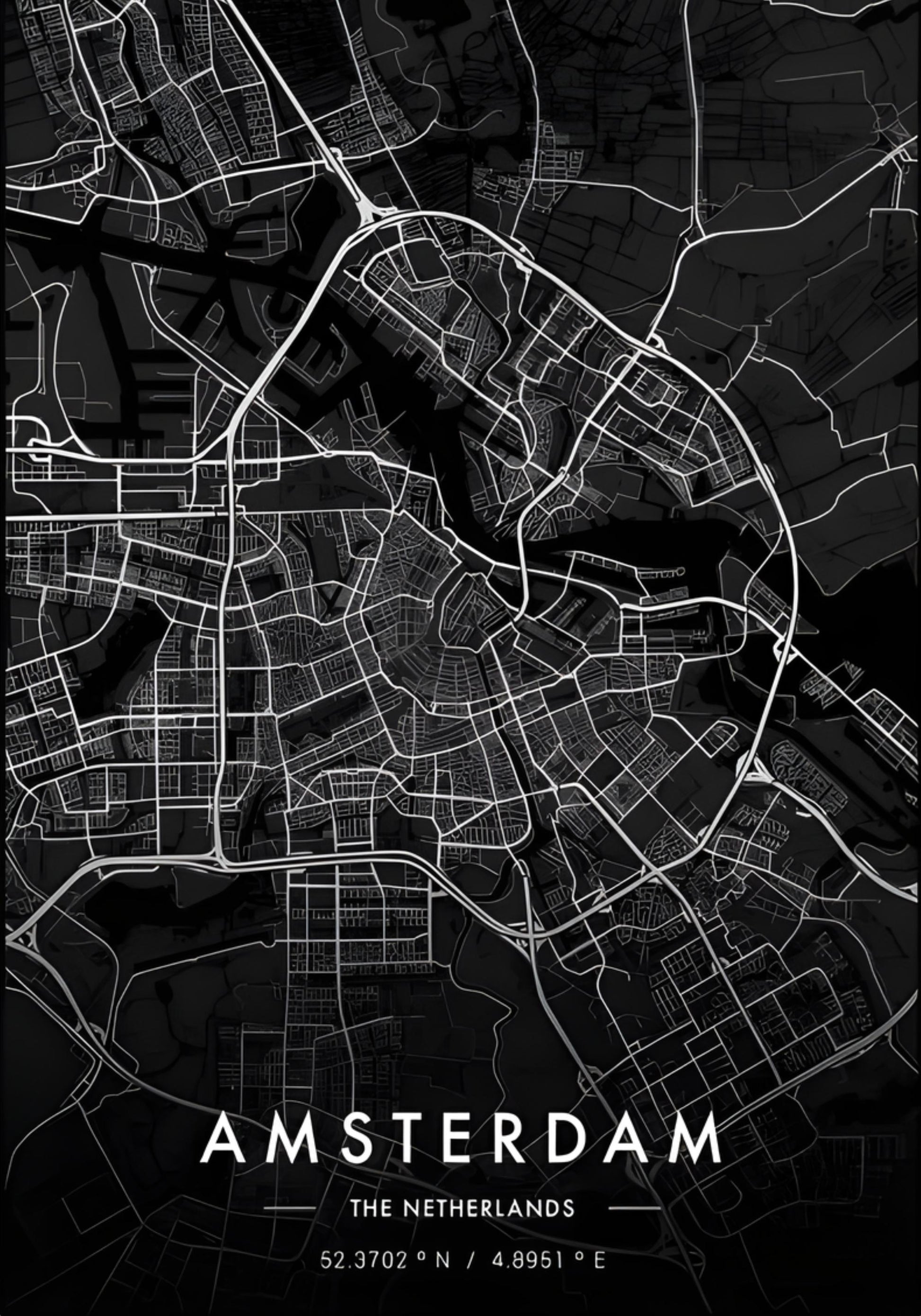 Amsterdam City Map Poster | Black and White | Modern Decor | Wall Art
