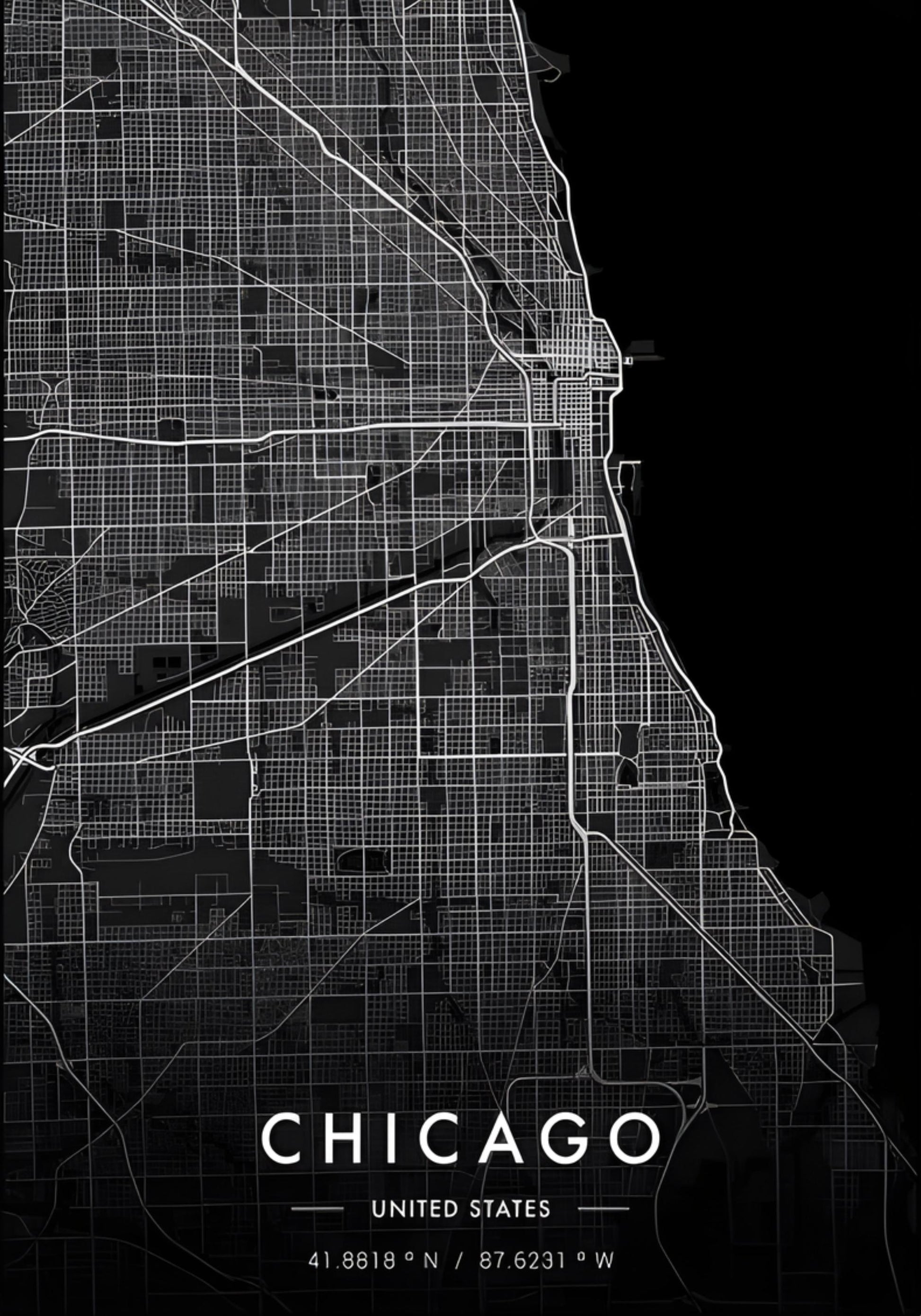 Chicago City Map Poster | Black and White Art Print | Modern Wall Decor | USA Cityscape