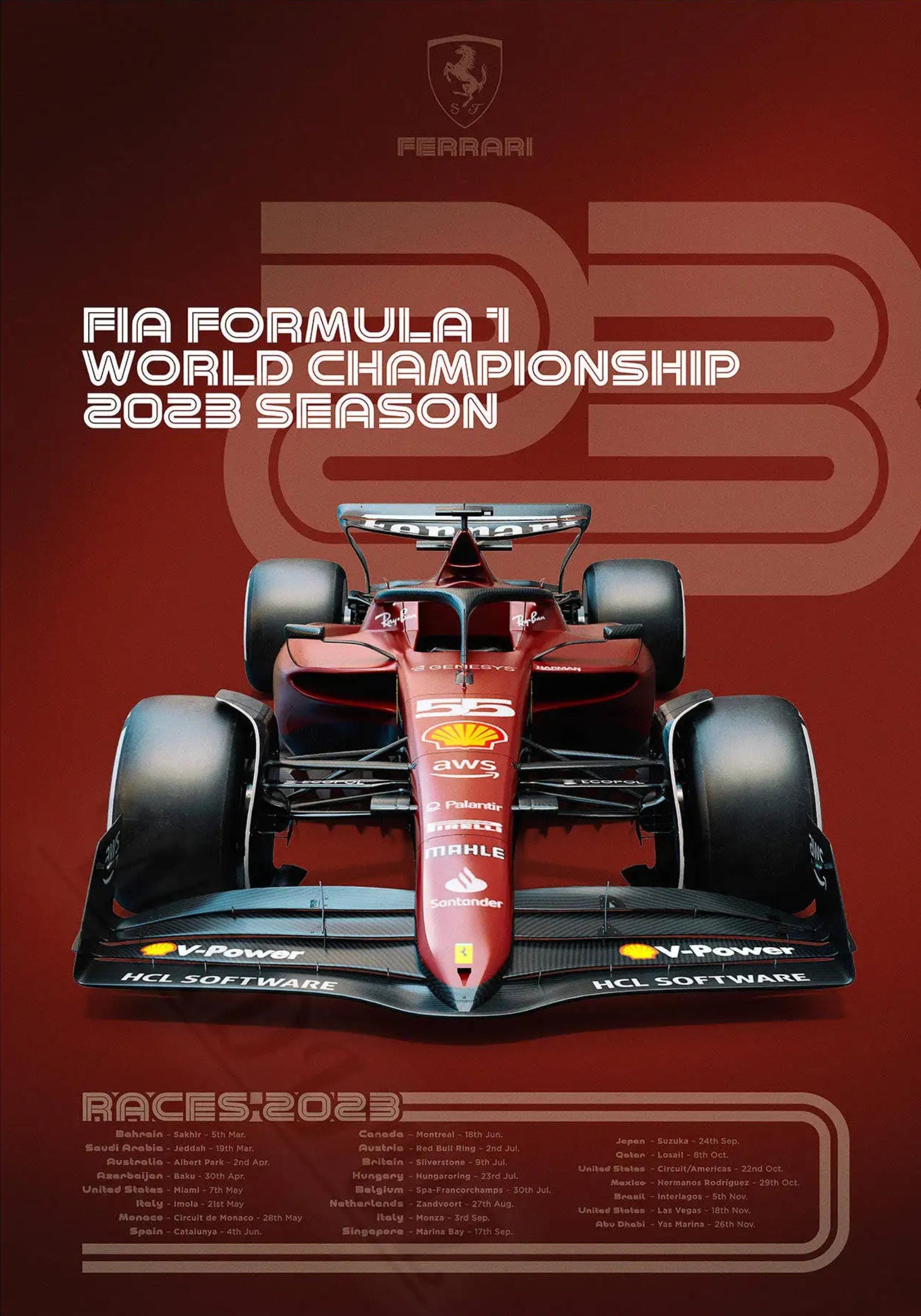 Ferrari | Charles Leclerc | Carlos Sainz | Classic 2023 F1 Team Championship Poster