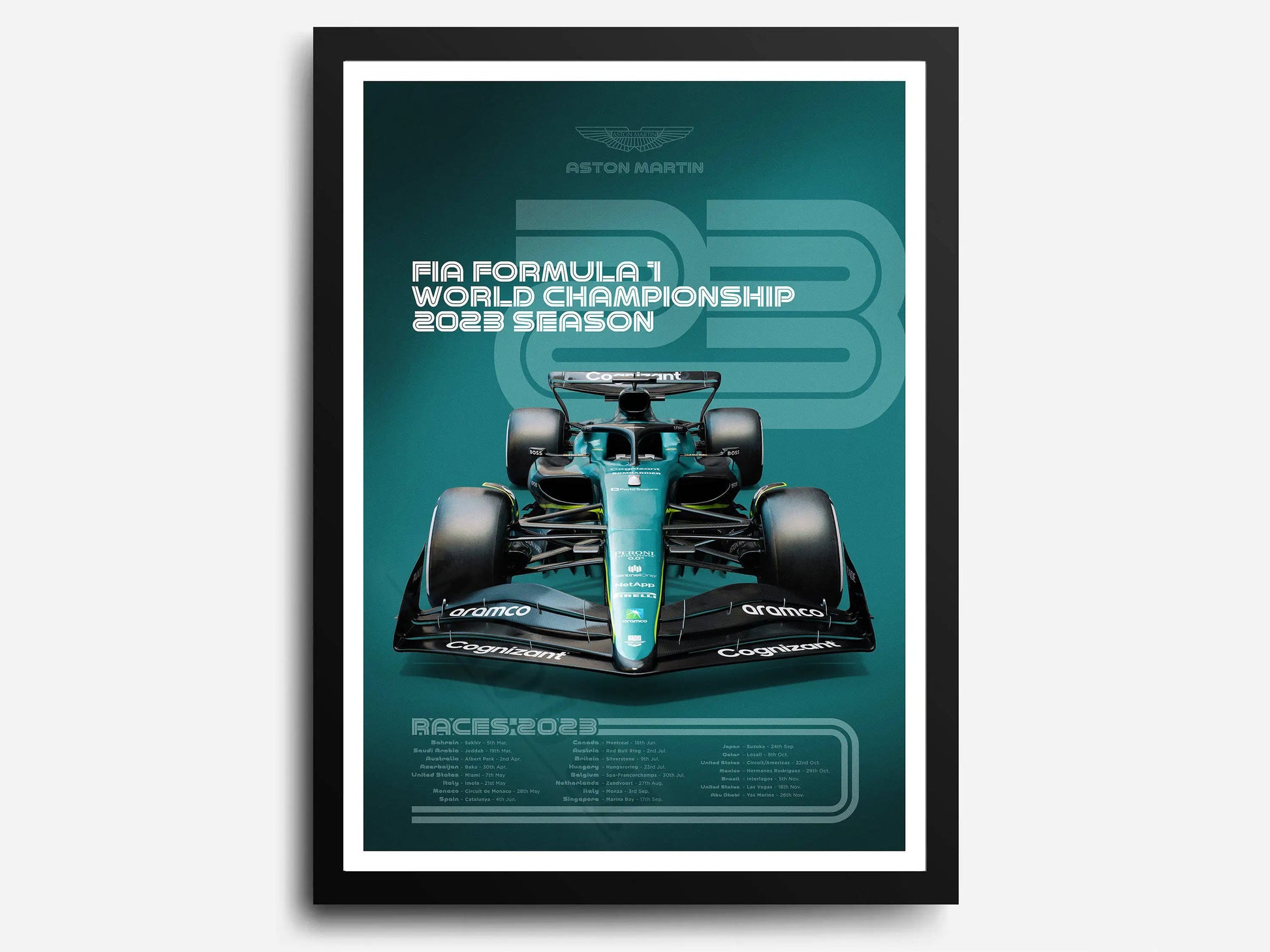 Aston Martin | Fernando Alonso | Lance Stroll | Sleek 2023 F1 Season Team Racing Poster
