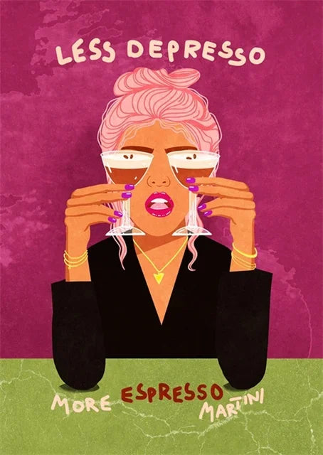 Less Depresso More Espresso Martini | Fun Quote Poster | Bar Wall Art