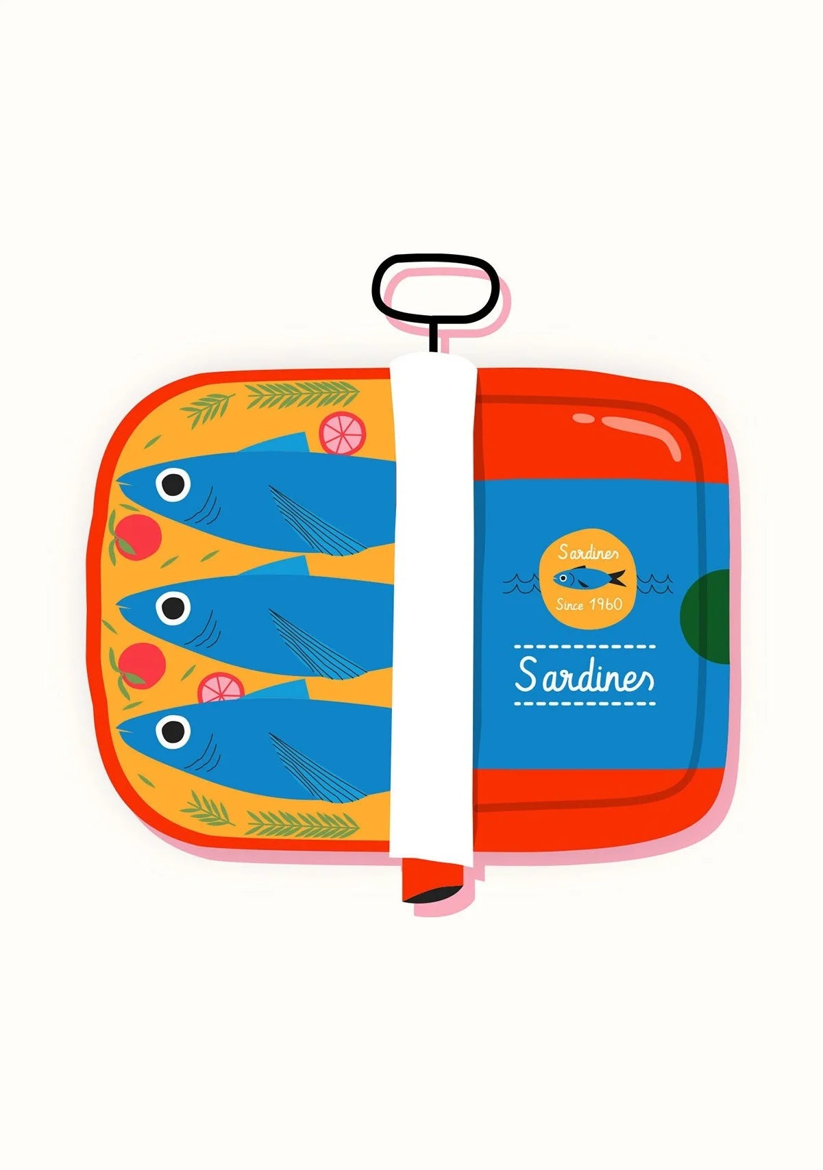 Sardines Poster | Vintage 1960 Culinary Illustration | Home Decor Wall Art | Kitchen Print