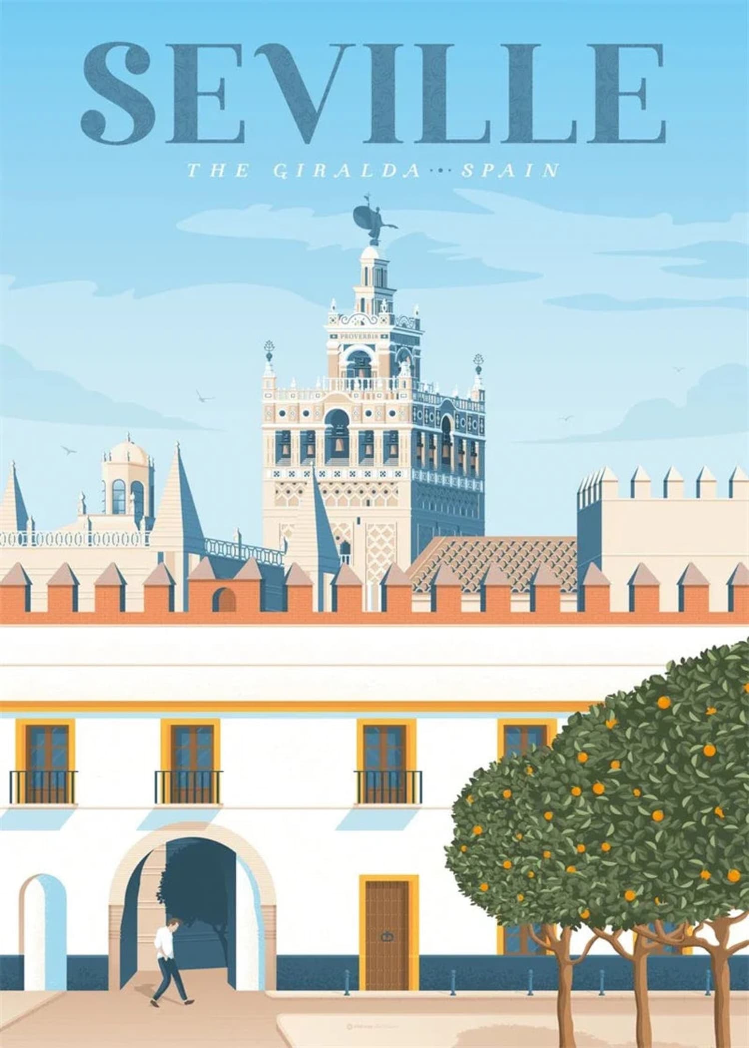 Iconic Destinations Poster | Seville, Spain | Scenic Travel Art Print for Home Decor