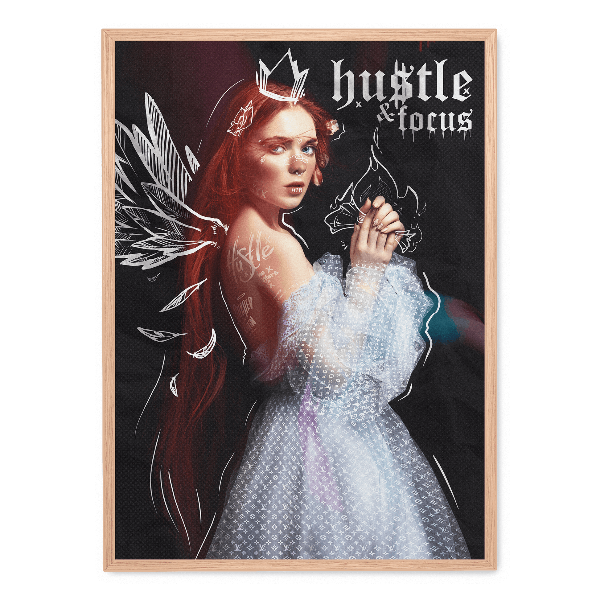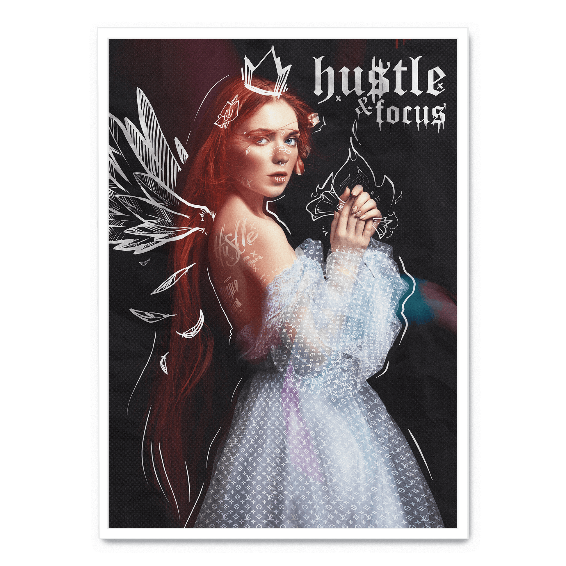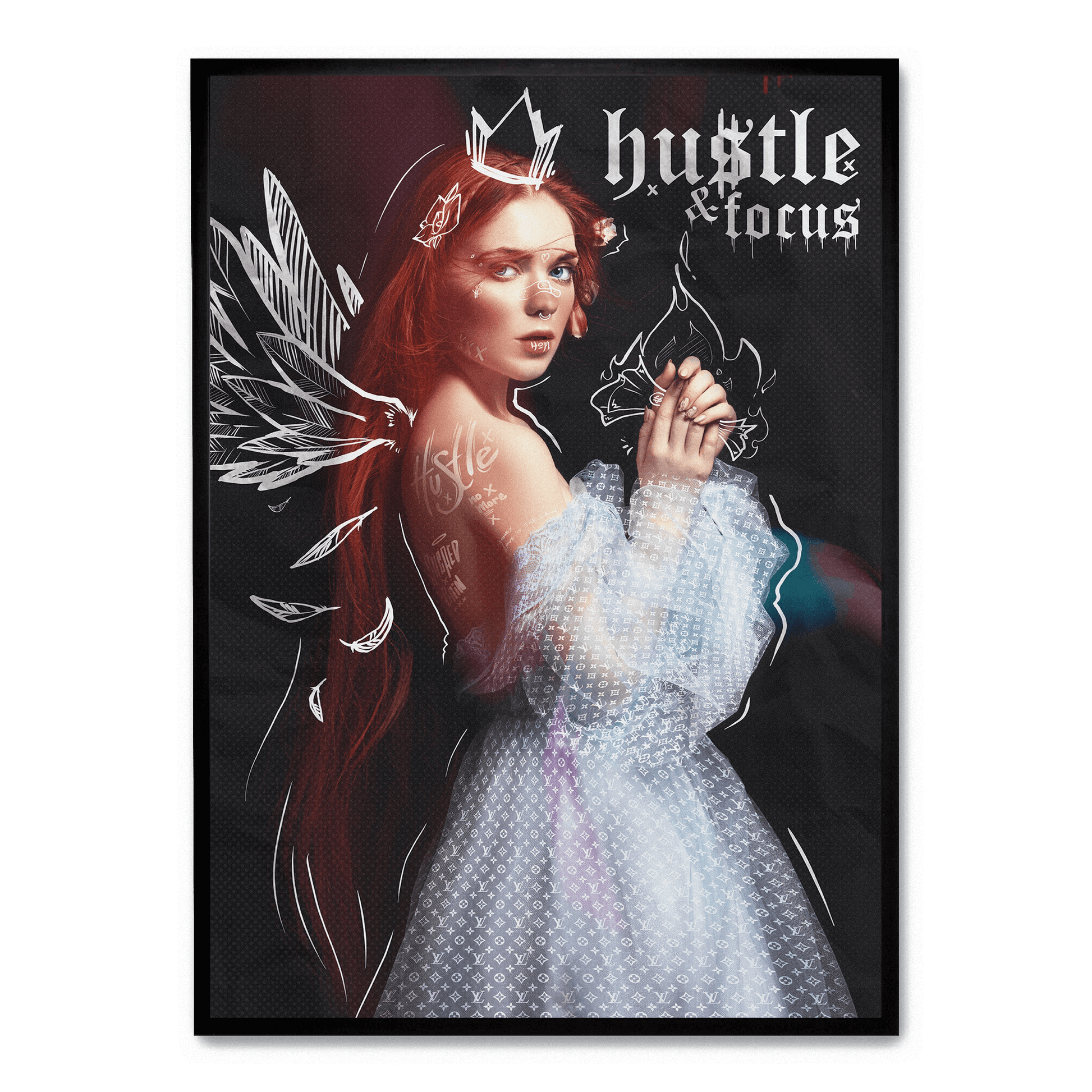 Hustle and Focus Motivational Art | Inspirational Wall Decor | Modern Poster for Office or Home | Typography Print