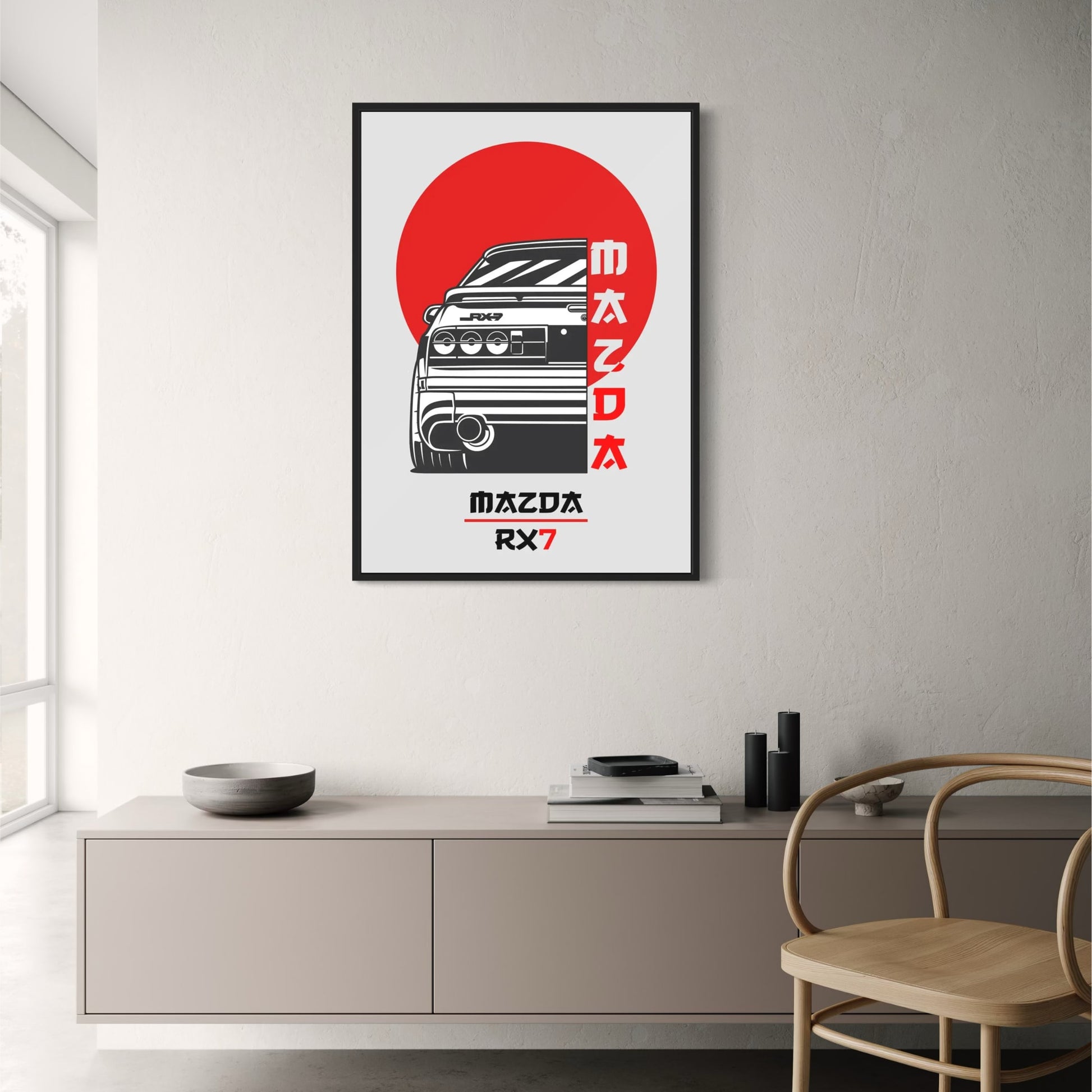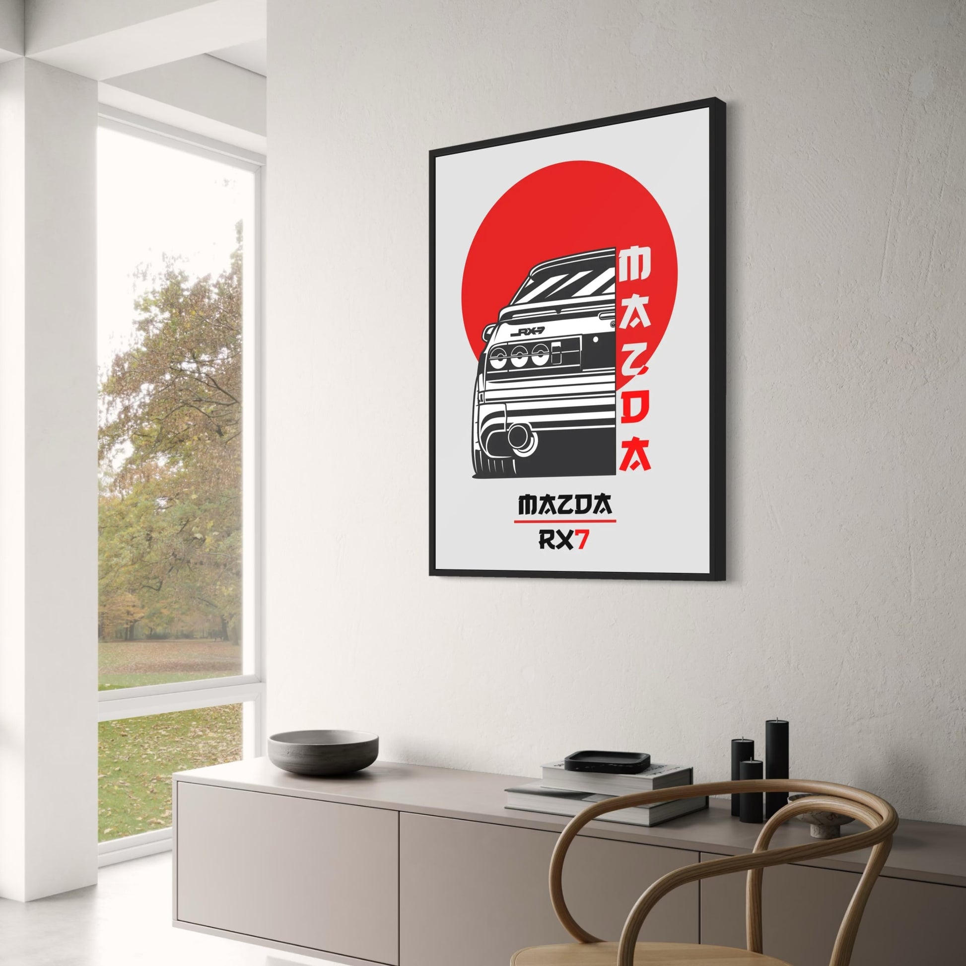 Mazda RX7 Sports Car Poster | Japanese Import Car Art Print | Automotive Decor for Home & Garage