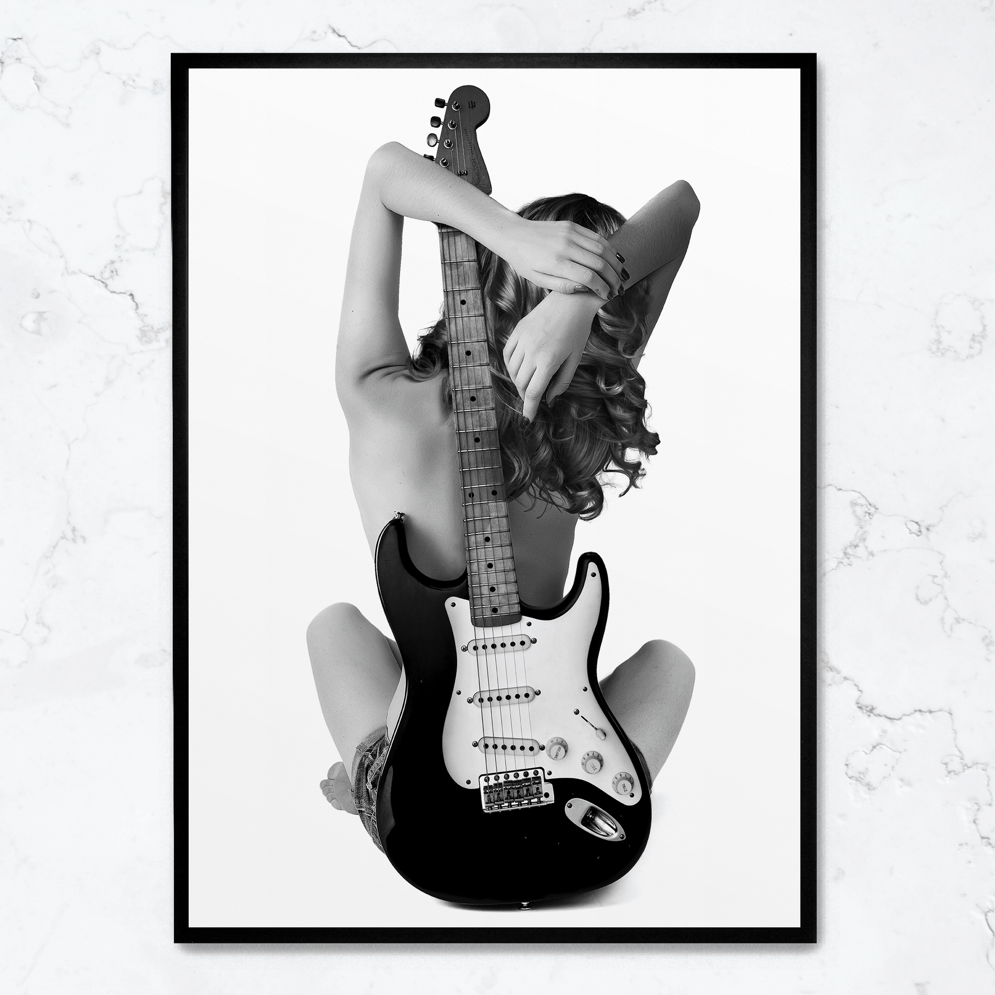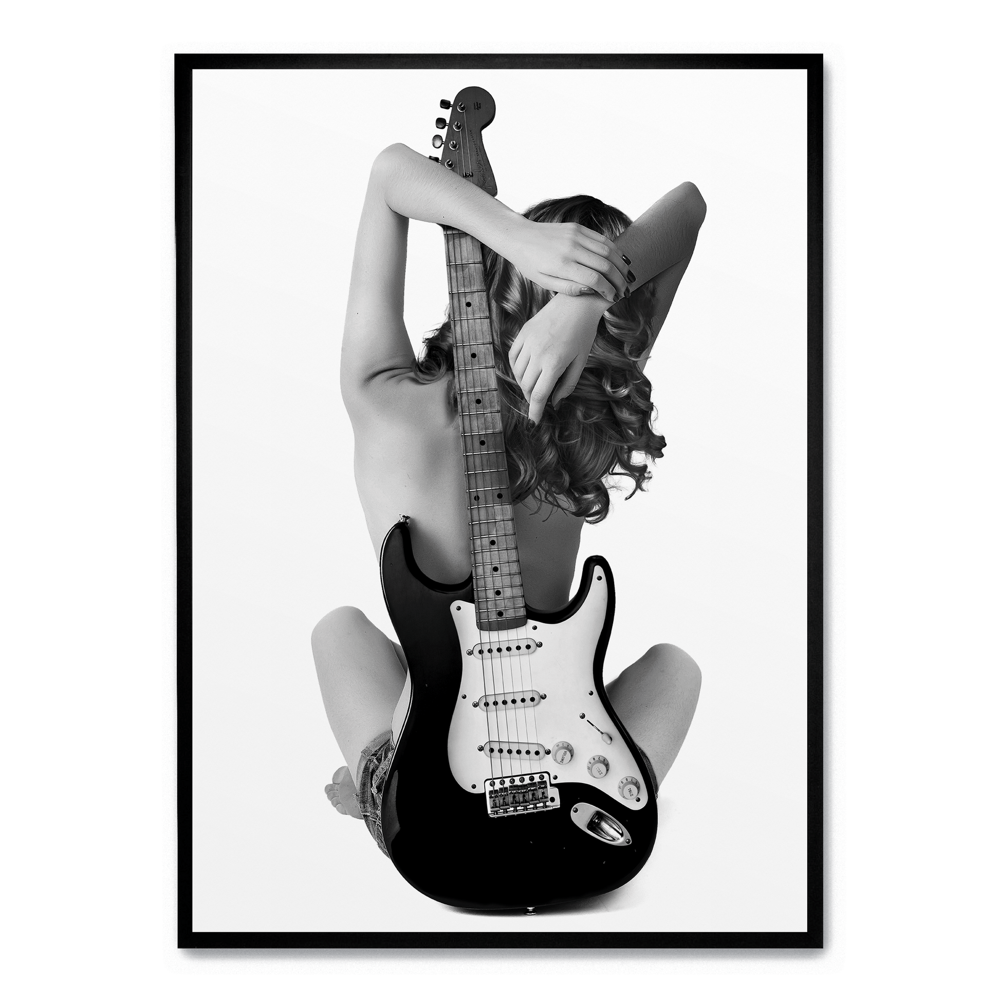 Lady and The Strat Poster | Unique Wall Art | Home Decor | Guitar-Themed Artwork | Vintage Style | High-Quality Print | Decorative Artwork for Living Room or Music Room
