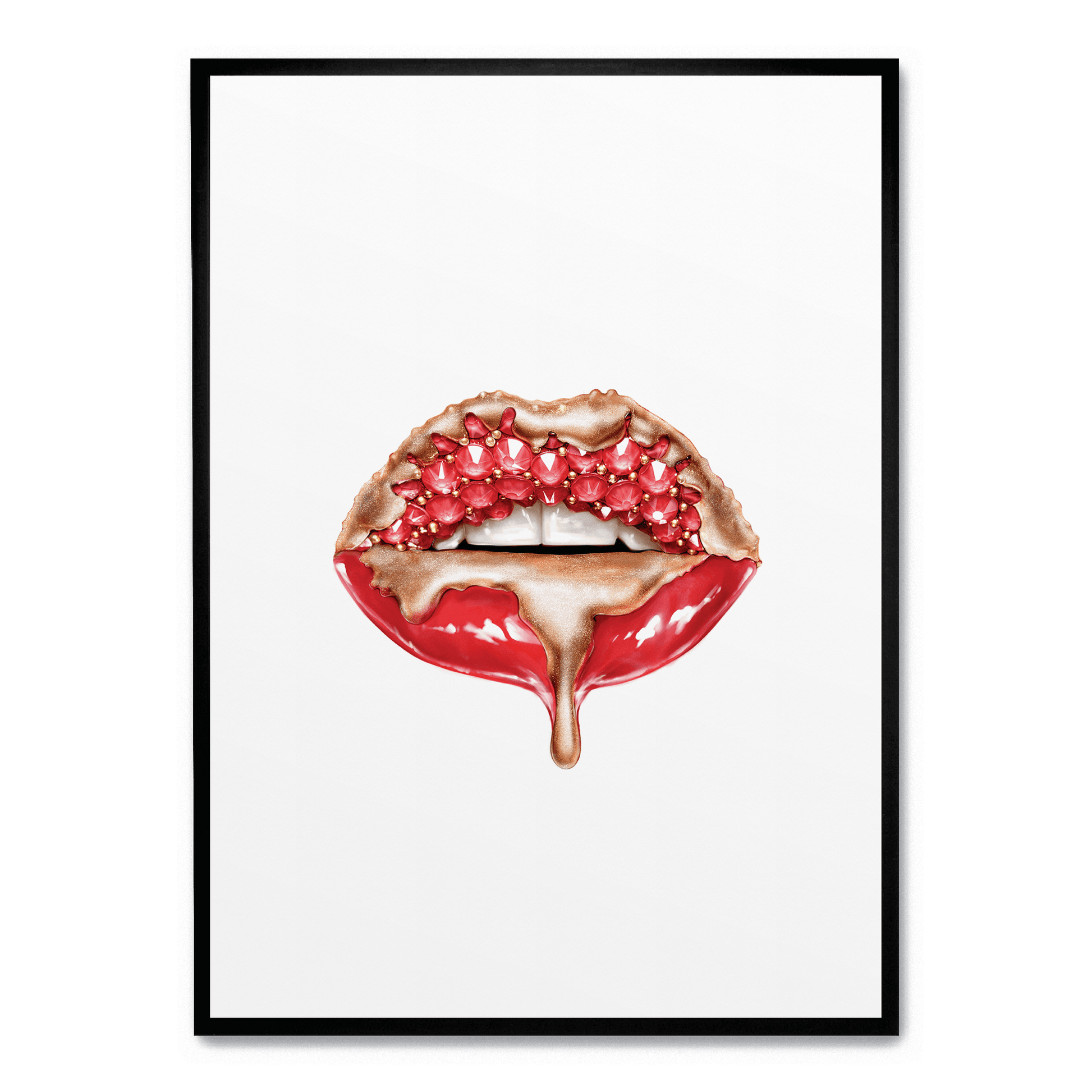 Red Glitter Lips Poster | Glam Wall Art | Home Decor | Modern Artwork | Sparkling Lip Print | Glamorous Room Accent