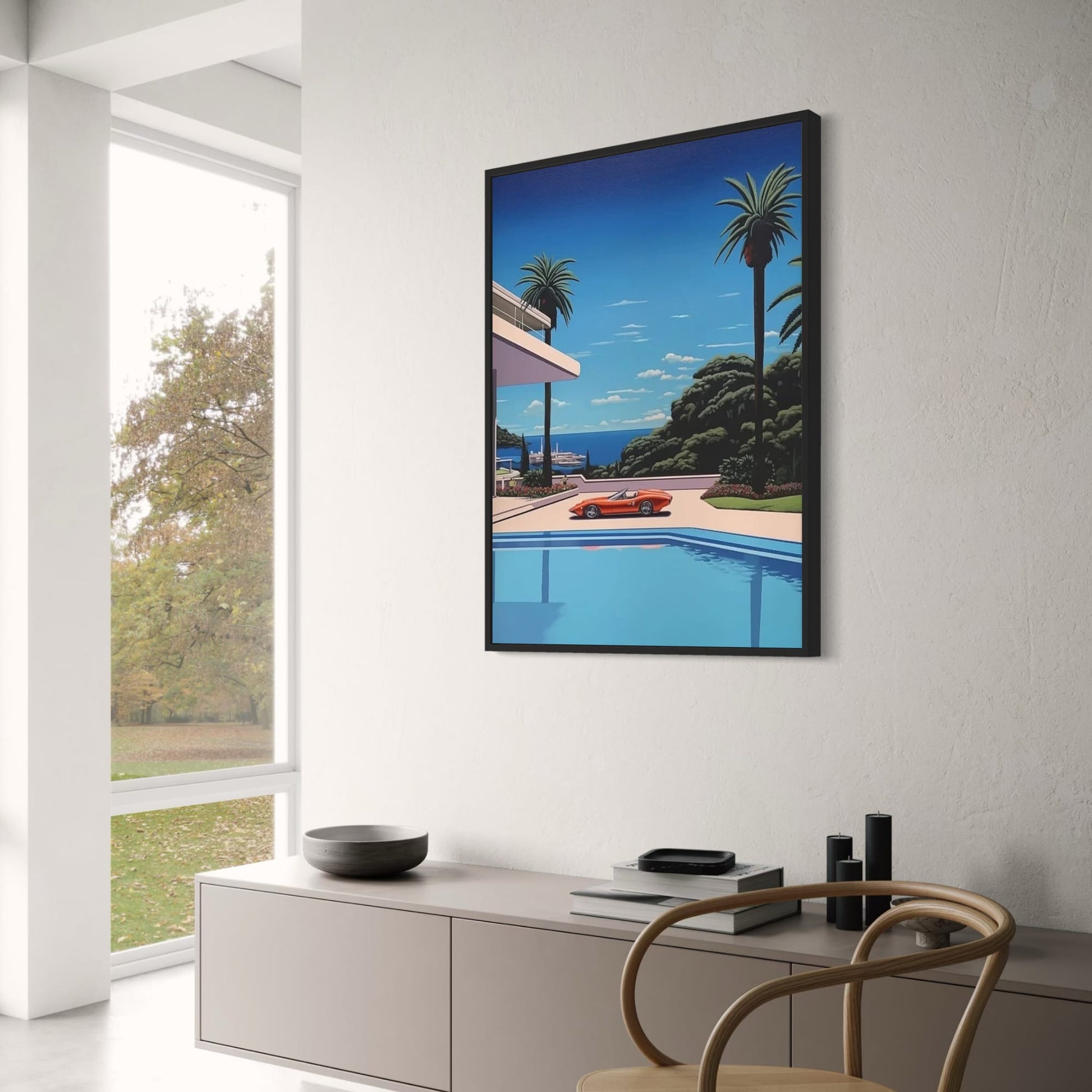 Retro Hiroshi Nagai Vaporwave | Japanese Beach City Car Canvas Poster | Wall Art | Home Decor