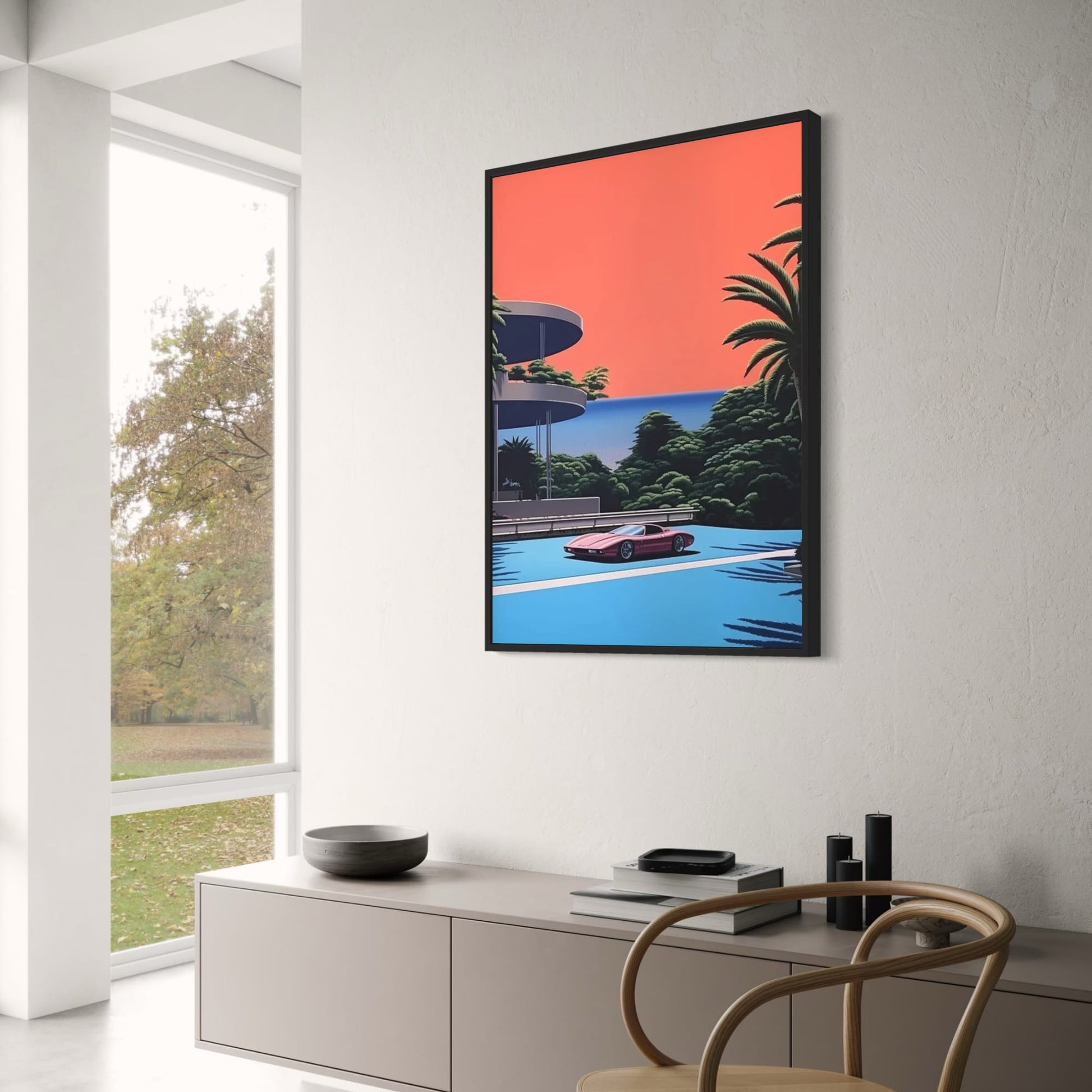 Retro Vaporwave Cityscape | Hiroshi Nagai Poster | Japanese Tropical Beach Car Art | Canvas Wall Decor