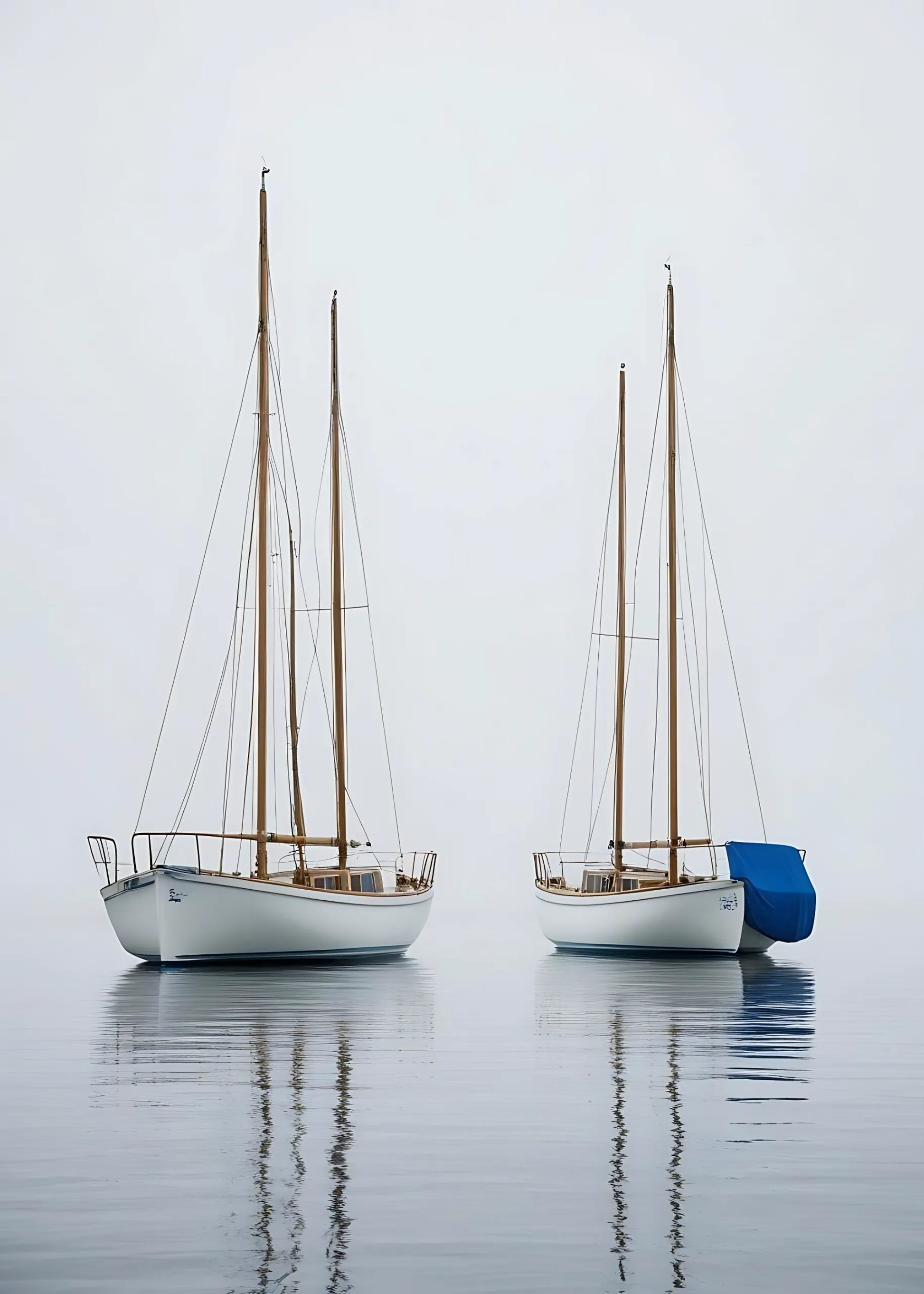 Two Fishing Boats Scene | Art Print | Nautical Decor | Vertical Poster | Ocean Landscape | Wall Art