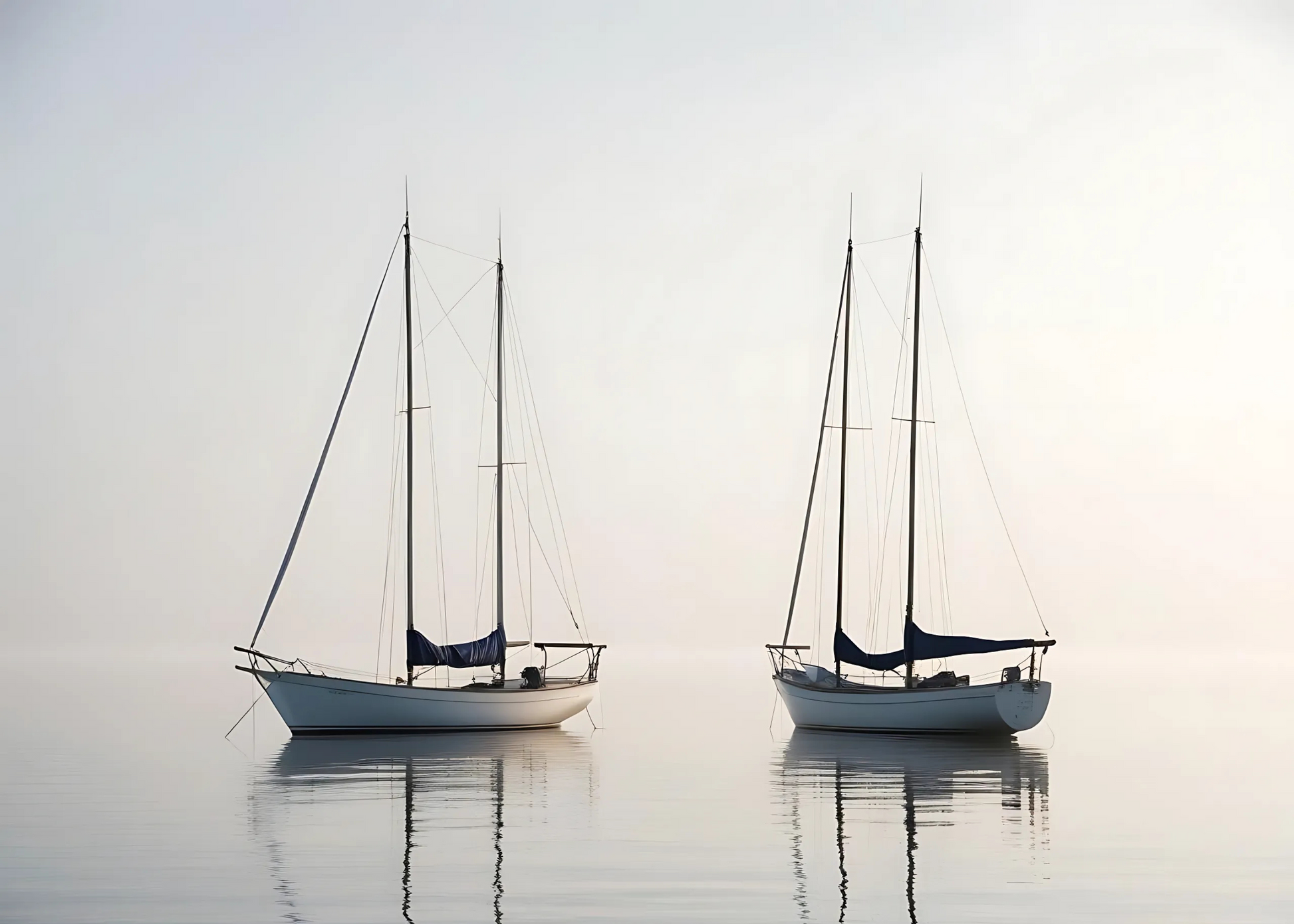 Sunrise Sailing Scene | Two Sailing Boats | Nautical Art Print | Coastal Wall Decor Poster